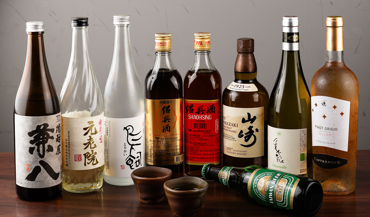 当店では、本場の茶葉を使用した香り豊かな台湾茶や中国茶をはじめ、シェフ厳選のお酒も豊富に取り揃えています。台湾紹興酒は、飲みやすい5年物から濃厚な10年物までご用意し、台湾ビールはその爽快感と中華料理との相性が抜群です。